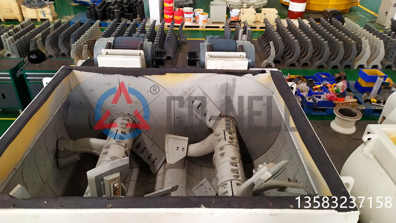 固廢處理設備采用雙臥軸強制式攪拌機中的雙螺帶攪拌機對固廢進行攪拌
